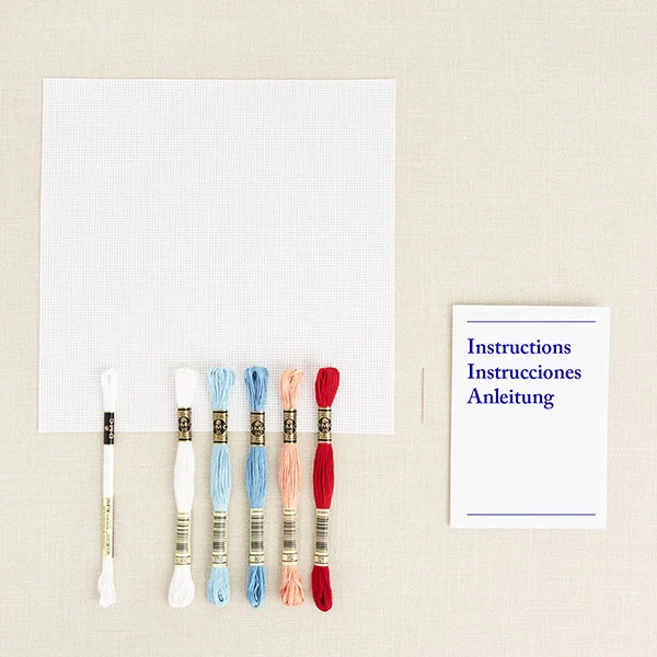 1 × 2 m / 2.2 yd Mouliné Spécial® skeins – 100% cotton 5 × 8 m / 8.7 yd Mouliné Spécial® skeins – 100% cotton 1 × 14 ct / 5.5 pts Aïda fabric – 22 × 22 cm / 8.7 × 8.7 in – 100% cotton 1 × cross stitch needle 1 × instructions