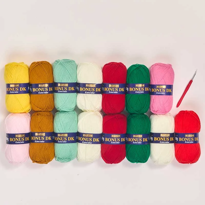This kit includes 15 balls of Hayfield Bonus Dk