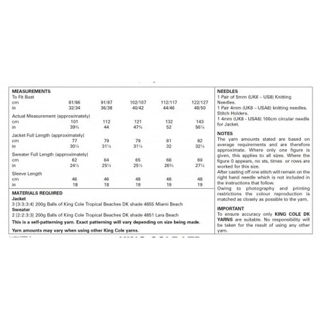 Jacket and Sweater in King Cole Tropical Beaches Dk