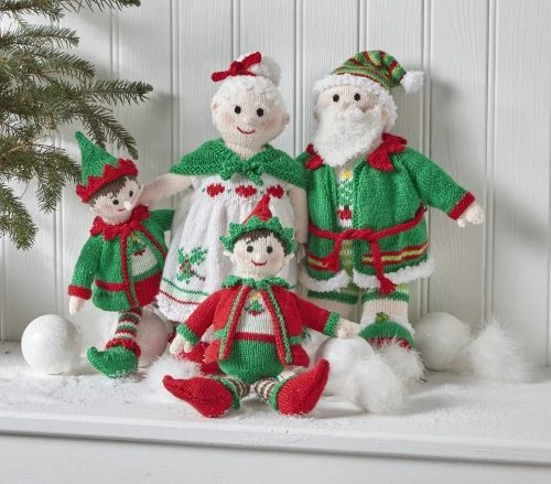 Step into the enchanting world of a North Pole Christmas with our delightful new knitting book. Join Santa, Mrs. Claus, and their talented family of elves getting ready for Christmas in their lovely new clothes.