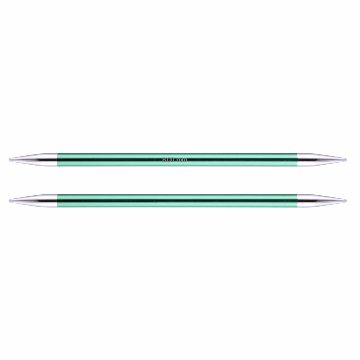 With lustrous metallic shades, specific to different sizes, beautiful silver tips, and a perfectly smooth finish, these beautiful kitting needles are sure to become a style statement for every discerning knitter! 5 double pointed needles in each pack.