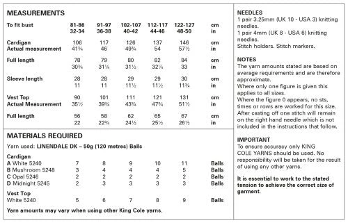 Ladies Cardigan and Vest Top Knitted in King Cole Linendale DK