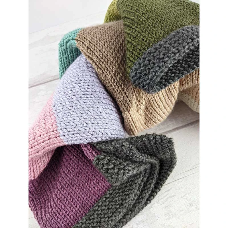 A super-simple, fast growing striped knitted blanket in super-versatile Scheepjes Chunky Monkey. The design is suitable for all skill levels and is a recolouring of our popular Very Berry Smoothie Blanket Colour Pack.]