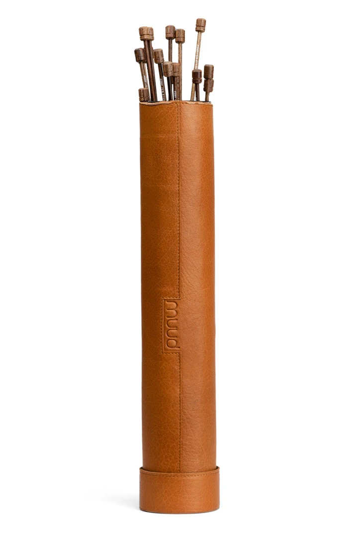 Upsala XL from muud is a beautiful, handcrafted leather tube, designed to keep your knitting needles perfectly organised.